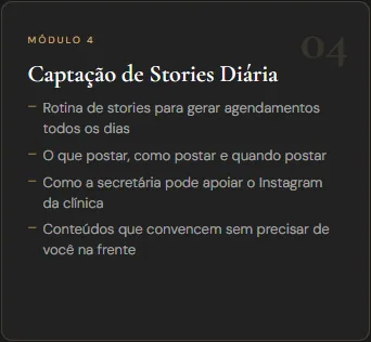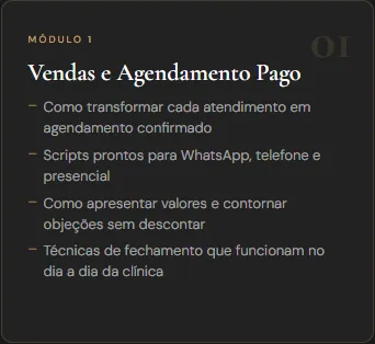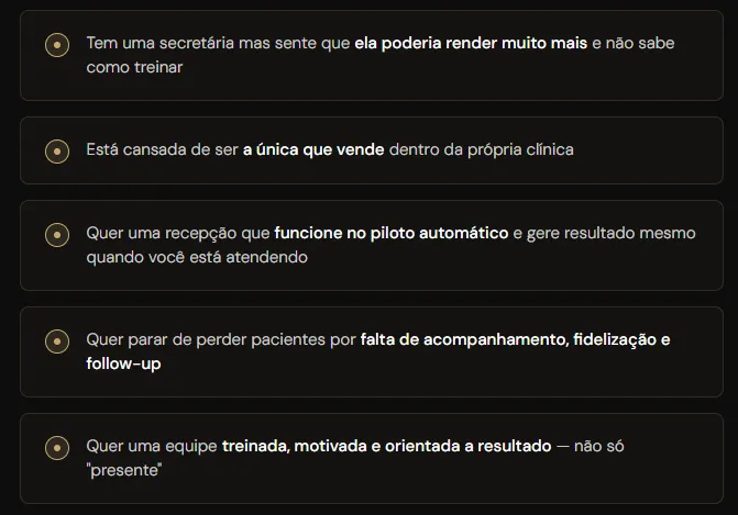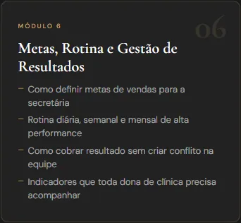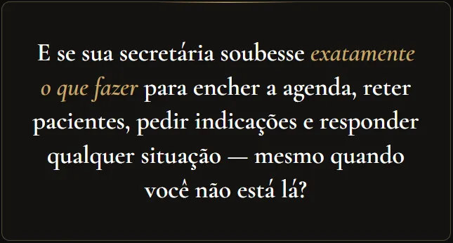 Para donas de clínicas de estética que têm secretária e querem que ela gere resultado real — agendamentos, vendas, retenção e indicações — sem precisar que a dona esteja presente o tempo todo.
